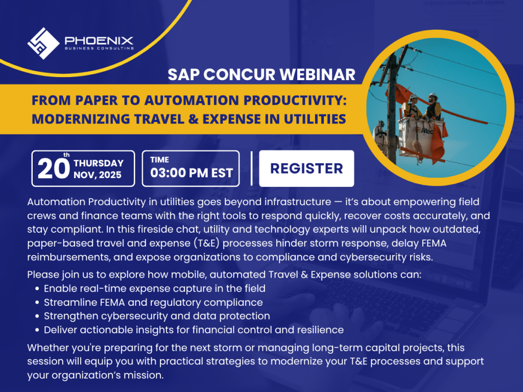 Automation Productivity in utilities goes beyond infrastructure — it’s about empowering field crews and finance teams with the right tools to respond quickly, recover costs accurately, and stay compliant. In this fireside chat, utility and technology experts will unpack how outdated, paper-based travel and expense (T&E) processes hinder storm response, delay FEMA reimbursements, and expose organizations to compliance and cybersecurity risks.